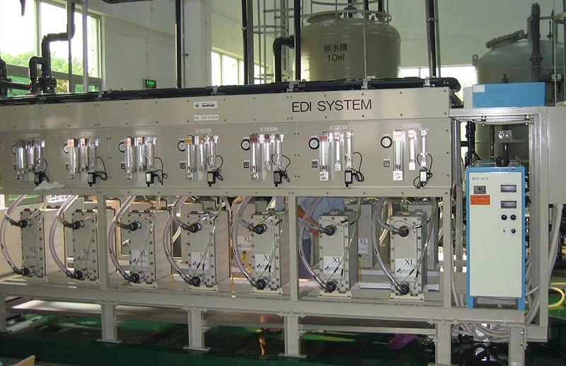 根據用戶提供的要求、技術交流要求、現場場地要求,以及現有工藝的綜合考慮,確定項目的處理工藝,處理工藝一般采用多介質過濾系統+活性炭過濾器+超濾+反滲透系統(一級、二級)+EDI交換系統等膜法處理工藝。多介質過濾系統作為預處理系統,去除多余的雜質及 SS;反滲透系統作為核心脫鹽系統,去除水中大部分離子,用EDI裝置是電去離子凈水技術是一種將電滲析和離子交換相結合的脫鹽新工藝。保證出水水質滿足用戶的用水要求。